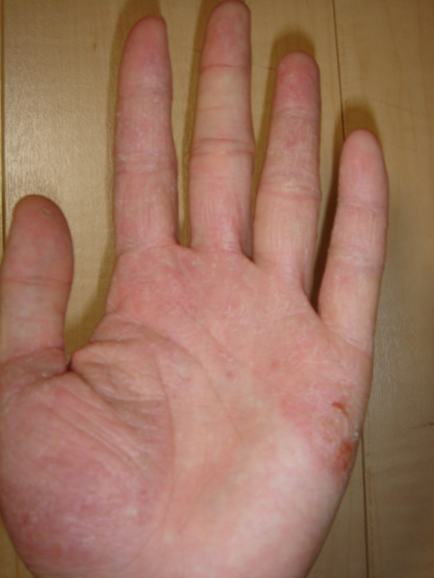 良くなる ⇒ 大量の水泡 ⇒ 皮膚がハガれ水泡破裂 ⇒ アカギレ ⇒ 良くなる